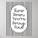 Bring calm and reassurance into your space with this Slow Down You’re Doing Fine in soothing grey tones. This minimalist wall art carries a gentle motivational message that reminds us to pause, breathe, and take life at our own pace. Perfect for bedrooms, offices, or as a thoughtful gift for friends, family, or anyone who needs a little daily encouragement.