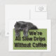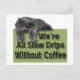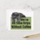A lazy cat draped over the words We're All Slow Drips Without Coffee.