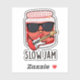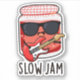 Slow Jam Funny Food Pun features a cool jam jar rocking out on his electric guitar. Perfect food pun for family and friends who love jam and music puns.