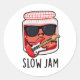 Slow Jam Funny Food Pun features a cool jam jar rocking out on his electric guitar. Perfect food pun for family and friends who love jam and music puns.