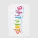 The golf towel exceeded my expectations! My husband actually approved of it! He liked the picture quality, thickness and overall usefulness of the golf towel I ordered to commemorate his lowest ever golf score. He liked it so well that I ordered 8 more towels with photos of his home golf course. Each one of the eight has the name of one of his golf group members. I will give them as party favors at my husband's 70th birthday party later this year. The different names were easy to add because the Zazzle template is so very easy to use. The colors were bright and authentic in all 9 of the towels that I made. The one of the 9 that I ordered has come out of the wash and line dry looking great.