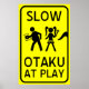 A road sign parody warning viewers to slow down! Otaku are in the area.