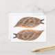 Two slimy brown and ginger slugs, one upside down and the other the right way up, sliming their way across a white postcard.