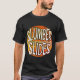 The t-shirt features the text "Slumber Slides" in a cool, multicolor design. The letters are blocky and bold, each in a different vibrant shade. Around the text are swirls and splatters in equally bright colours, creating a fun and energetic look.