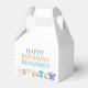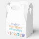 This adorable favor box design features all the beloved Slumberkins characters lined up along the bottom, creating a sweet and colorful birthday display. The bold “Happy Birthday” message appears in playful multicolored lettering, bringing energy and excitement to the clean white background. Soft pastel tones paired with brighter pops of blue, orange, green, and purple give the design a cheerful, kid-friendly feel, while scattered star accents add a festive sparkle. The customizable name makes it extra special and perfectly personalized for the birthday child. A charming addition to any Slumberkins-themed celebration, this design keeps the party coordinated and full of character.