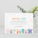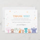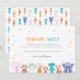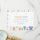 This cheerful thank you card design features the full lineup of beloved Slumberkins characters standing together along the bottom edge, creating a sweet and memorable closing to a special celebration. The bold “THANK YOU!” headline appears in playful multicolored lettering, surrounded by scattered pastel stars that add a festive sparkle across the clean white background. Beneath the headline, a heartfelt birthday message adds a warm and personal touch, with space for a customisable signature to make it uniquely special. The combination of soft tones and vibrant character colours creates a balanced, joyful look that coordinates beautifully with a Slumberkins-themed birthday party.