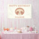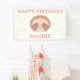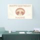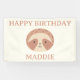 This adorable birthday banner design features the sweet Slumberkins Sloth character centred in a clean, minimal layout that feels warm, cosy, and perfectly kid-friendly. The sloth’s gentle expression is highlighted in soft blush and warm neutral tones, creating a calming focal point against the light background. The classic “Happy Birthday” message paired with a customisable name keeps the design personal while maintaining a simple, modern look that’s easy to style. Ideal for baby birthdays, toddler celebrations, or animal-themed parties, this banner adds a charming Slumberkins touch and creates a soft, welcoming backdrop for photos and party décor.