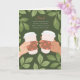 This Father's Day card is for coffee lovers! With my dad, I could always tell him about my day or ask for advice while having a cup of coffee with him. We'd put our heads together and there was no problem that couldn't be solved. This illustration features a botanical, leafy border and two hands holding mugs of coffee. The copy reads: "Dad, Nothing beats a heart to heart and a good cup of coffee with you. The next one's on me."