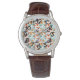 This men's watch has a mid-century modern design of small, rounded triangles with white centres and ovals, in the middle in 70s colours, overlapping each other. Want different colours? Message me.