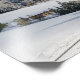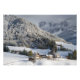 Landscape photo print of the small alpine village Sankt Magdalena, or Santa Maddalena with a church, some chalets and hotels in the middle of the forest of the Val di Funes valley (Villnoesstal) in the snow in winter, South Tyrol, Italy.