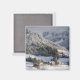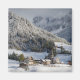 Square magnet of the small alpine village Sankt Magdalena, or Santa Maddalena with a church, some chalets and hotels in the middle of the forest of the Val di Funes valley (Villnoesstal) in the snow in winter, South Tyrol, Italy.