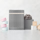 A wrapping paper designed with a black and white gingham pattern in small size.