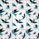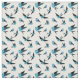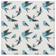 Small blue bird flying, sitting, Folk art print Fabric