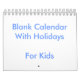 In small blue Blank Calendar With Holidays for kids you can find blue changeable text on front page and United States events and holidays are added too.