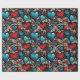 Small Blue Roses Tattoo Hearts Digital Theme Wrapping Paper
