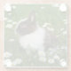 A simple, cute, lone rabbit casually nibbling on some fresh greens; surrounded by cute white daisy flowers.