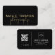 Elevate your photography business with our Small Business Cool QR Code With Logo Photography Business Cards. These cards are meticulously crafted to bring a touch of professionalism and creativity to your brand identity. The modern minimalist design, featuring rounded corners and a black and gold colour scheme, creates a luxurious and sophisticated look that resonates with the aesthetics of the photography industry.