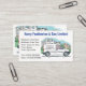 Small Business with Name on a Company Van. Colour illustration of a driver at the wheel of a white van. Illustration appears on both sides of the business card. Courier services or delivery man and van calling-card. Start-up business or new business stationery item.