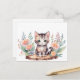 A charming little kitten with large green eyes sits on a piece of wood surrounded by delicate flowers in pastel tones. This cute watercolor design is perfect for children’s rooms, cat lovers or as a loving gift idea. Ideal for T-shirts, posters, notebooks and more!