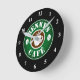 Small coffee shop wall clock with custom name. Trendy decor for kitchen, cafe, cafeteria, restaurant, company, office, bar or shop. Vintage brown and green colours. Personalise with your own funny quote, saying or name. Make your own decor accessory. Trendy decorations for coffee lovers and caffeine addicts. Coffee bean and cup logo.