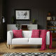 This minimalist throw pillow features a small geometric diamond pattern in trendy Viva Magenta and white on both sides. The colours are customisable.