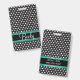 Classic design white dots on a black background. Badges hold up well on luggage. They don't crack or break easily. Add your name, initials, etc. for personalisation.
