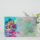 Whimsical ,colourful ,vibrant enchanted fairy woods in the moon light .Acrylic -watercolor painting with gold sparkles and iridescent colours. .A vibrant magic flower in bright aqua blue,green,teal,red brown,yellow colours with golden and silver foil ..Beautiful for Christmas,Holidays, special occasions ,birthdays, wedding and Valentines Day