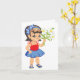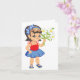 A lovely sweet design of a pretty small girl holding some daisies. This design looks so cute. The girl is wearing a red top and blue skirt with a blue headband and is standing holding some daisies. This small girl holding daisies design looks great on these note cards