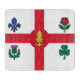 Montreal flag cutting board, Canadian patriotic kitchenware, Quebec heritage prep board, fleur-de-lis rose thistle shamrock, glass board with city flag, cultural kitchen accessory, Canada pride gift item, iconic Montreal symbols board, red cross maple leaf decor, elegant Montreal chopping board, food prep Montreal style, symbolic glass board, historic Montreal flag design, multicultural Canada kitchen item, civic pride kitchen tool, small decorative cutting board, gift for Montreal lovers, Canadian glass prep surface, Montreal city identity cooking gift, kitchen decor from Quebec