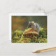 Small mouse sitting on a top of a mushroom postcard