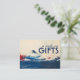 The front features a captivating hand-painted-style illustration of Mount Fuji rising above deep indigo waters, accented with subtle washes of cream and crimson. The sophisticated caption “a note on GIFTS” is artfully placed in bold, modern typography paired with graceful script, setting an inviting and respectful tone for guests.