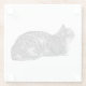 A compact scene shows a head-forward tabby resting between sips. Grayscale shading flatters wood, stone, and glass. Perfect as a stocking stuffer or mix-and-match set.