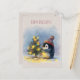 Small penguin decorates tiny Christmas tree, Holiday Postcard