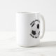 Football Soccer Ball image / picture / photo 15 oz. Large Classic White custom Mug with personalised text (OPTIMIZED FOR SMALL SIZE TEXT AS DISPLAYED ON THIS SIZE OF VARIOUS MUG STYLES). The perfect gift for a football fan or soccer player. Customise upper and lower text on the front and the back of the mug by clicking 'Personalise this template'. Create your own birthday or Christmas gifts for a tennis lover or sports enthusiast and design your own Christmas stocking fillers or just a great customisable gift for yourself.