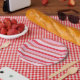 Small Pink and Coral Stripes Paper Plate