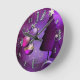 A purple Christmas scene with complementary shades of purple in the baubles, tree and backgroung highlighted with silver bows, numbers and stars.