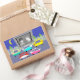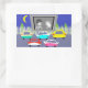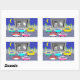 Pass the popcorn! These Small Town Drive-In Movie Stickers will transport you to a simpler time, when gas was cheap, rock and roll was young, and the movie stars of Hollywood's Golden Age shined brighter than the night sky. The design features the rear view of five, virtually indestructible, retro cars in colours of red, pink, turquoise, jade and yellow. In front of the cars is a giant movie screen, showing a black and white movie, featuring two, star-crossed lovers in hats and trench coats. In the background, there is a grey, picket fence, a row of green, cedar trees, a royal blue sky and a yellow, crescent moon. We hope you've enjoyed our feature presentation!