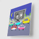 Pass the popcorn! This Small Town Drive-In Movie Wall Clock will transport you to a simpler time, when gas was cheap, rock and roll was young, and the movie stars of Hollywood's Golden Age shined brighter than the night sky. The design features the rear view of five, virtually indestructible, retro cars in colours of red, pink, turquoise, jade and yellow. In front of the cars is a giant movie screen, showing a black and white movie, featuring two, star-crossed lovers in hats and trench coats. In the background, there is a grey, picket fence, a row of green, cedar trees, a royal blue sky and a yellow, crescent moon. We hope you've enjoyed our feature presentation!