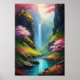 Discover a hidden gem within nature's embrace with this captivating scene. A small waterfall cascades gracefully in a charming valley, its tranquil waters a soothing melody. The valley is adorned with a tapestry of beautiful flora, creating a scene of enchanting beauty.