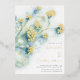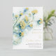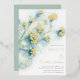 Birthday Any Age Foil Invitation with small white flowers. Hand drawn abstract flowers on a blue green background. Soft Ornate floral watercolor painting. Abstract nature backdrop with gypsophila floral branches. Vintage cute floral twigs, elegant flowers, spring or summer floral design, romantic bouquet. Botanical plot. Delicate flower botany Birthday Any Age Foil Invitation. Small White Flowers Collection.