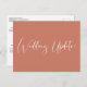 If circumstances require you to reduce attendance at your wedding, you can inform your extended guest list with this modern and minimal, yet elegant, wedding update postcard announcement. "Wedding Update" is written in a stylish white script across the front's dark orange-red-background. On the back you can easily personalise the wedding downsize message in more detail and add any virtual ceremony, future celebrations and wedding website information on the back.