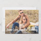 If circumstances require you to downsize your wedding to a micro wedding, you can inform your original extended guest list with this downsized wedding announcement. The front features your favourite engagement photograph and "Same Love, Smaller Wedding" written in large contemporary white script across the bottom of your photo, and underneath you can personalise your names and the wedding downsize announcement. On the reverse side, you can personalise your message in more detail and add any livestreaming and wedding website information, all in white typography against a classic blue background.