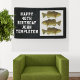 This is a great birthday banner for the avid angler's birthday. Whether the birthday boy or girl is turning eight or forty, the age and name can be personalised. The design features three smallmouth bass a black diamond plate background. A rugged birthday banner.