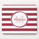 Smart Crimson Red Awning Stripes Name and Monogram Mouse Pad