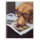 This adorable dog is sure to make you smile! She has on a pair of thick-rimmed black glasses while resting her head on a book (about dogs!).