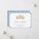 Timeless blue and white design (with a hint of Autumn orange) featuring my watercolor ginger jar pottery and pumpkin illustrations. These were originally handpainted by me before being scanned into digital form. This is complemented by a "Greek Key" border. I've set the template up for a Change of Address but all of the text fields are customisable to your needs. You can move, delete or add text fields by entering the design tool. You can also change the contrast colour of the Greek Key border on the front and the pattern on the back (shown here as a dark blue) to any colour you like by entering the design tool (underneath the text customisation area, click to "customise further") then changing the background colour on the front.