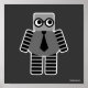 This cute and smart geek robot illustration features a fun robot with grey and black striped legs and arms, thick rimmed black glasses and a stylish tie! This black and white cartoon robot artwork is the perfect gift to buy for robot lovers and anyone who loves original graphic art!