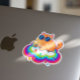 Resting on a colorful rainbow cloud, this clever kitty combines brainpower with style. It is the perfect accessory for students, designers, creatives, or anyone who loves funny cat memes and bright ideas. Show off your genius side with this unique art!"