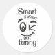 Funny design with a cartoon face as a line drawing and the quote "Smart it wasn't but funny". Good for the young and the old, for children and for adults, for women and for men.