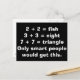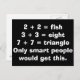 2 + 2 = fish 3 + 3 = eight 7 + 7 = triangle Only smart people would get this.